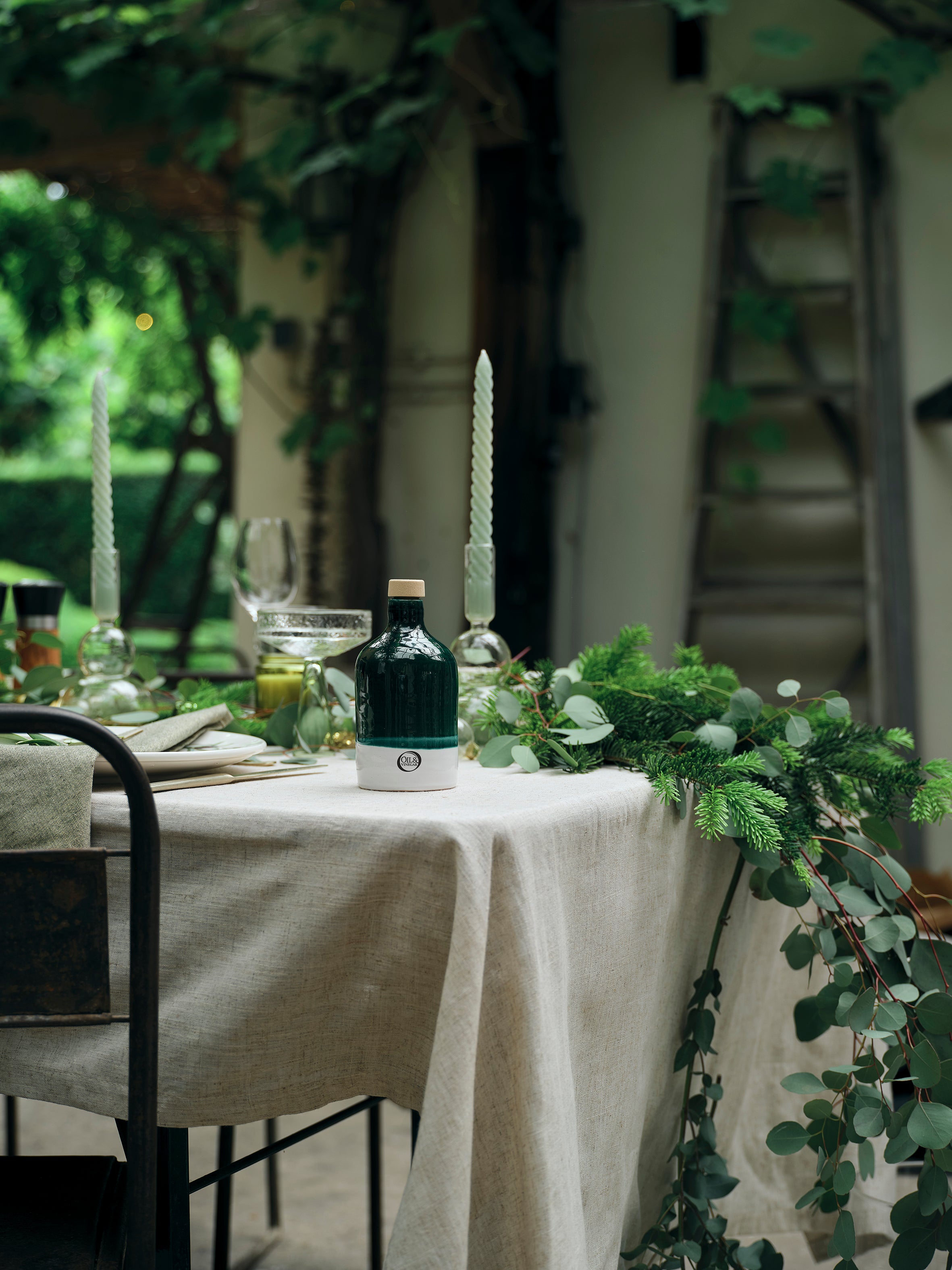 Deze prachtige olijfolie- en balsamicoset is een feest voor het oog en de smaakpapillen. De flessen vormen samen een elegante omhelzing, perfect voor iedere tafel. De set bevat extra vierge...