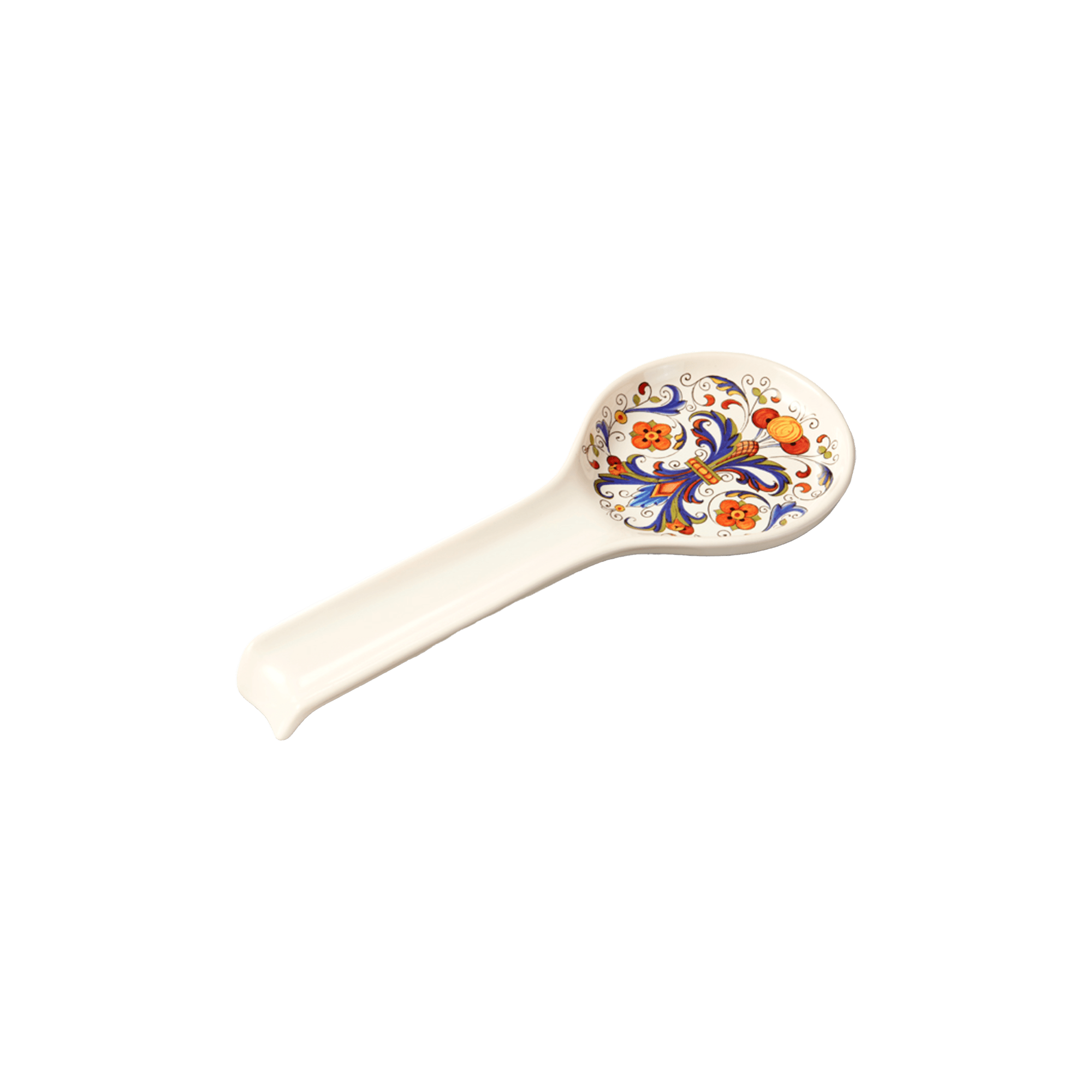Handgemaakte keramische lepelhouder met traditioneel Derutamotief. Ideaal om je pollepel op te leggen tijdens het koken. De lepelhouder is vaatwasser- en magnetronbestendig. Deze lepelhouder is onderdeel van de prachtige serviesserie...