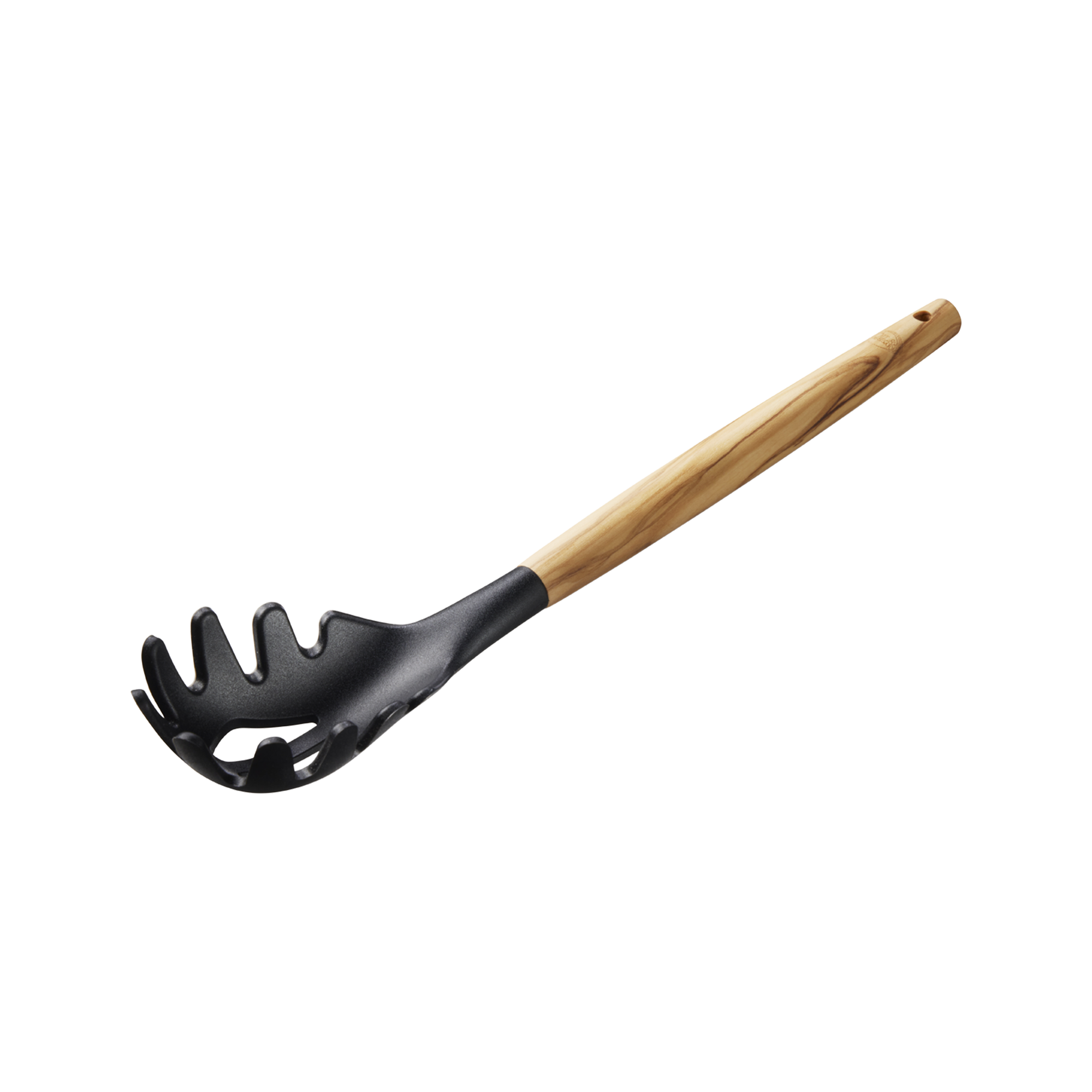 Haal het beste uit je pastagerechten met deze stijlvolle pastalepel! Ideaal om pastagerechten om te roeren en op te dienen. Dankzij de olijfhouten handgreep in combinatie met het zwarte siliconen...