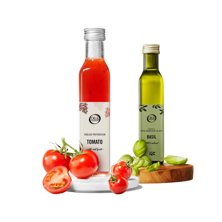 1. Vinaigre de tomate et huile d'olive extra vierge au basilic