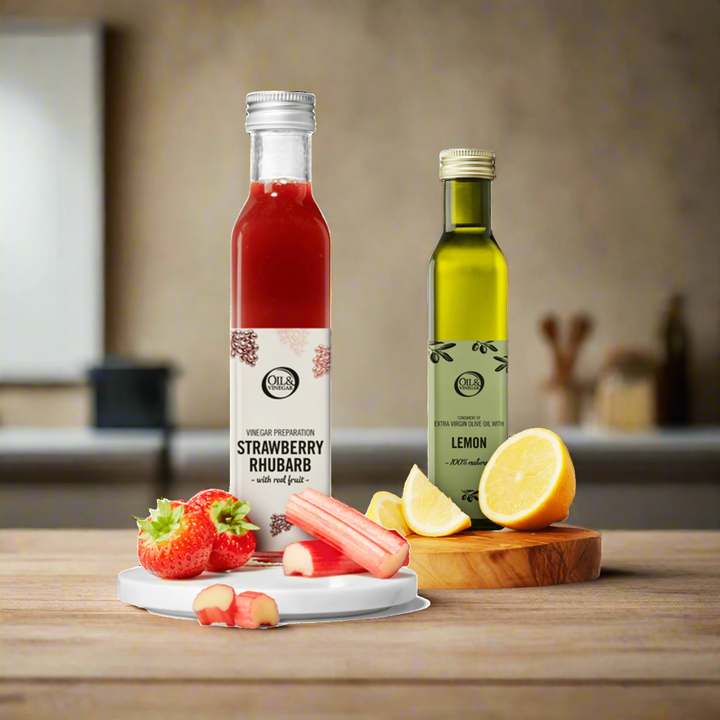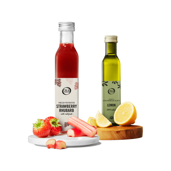 3. Vinaigre de fraise-rhubarbe et huile d'olive extra vierge au basilic