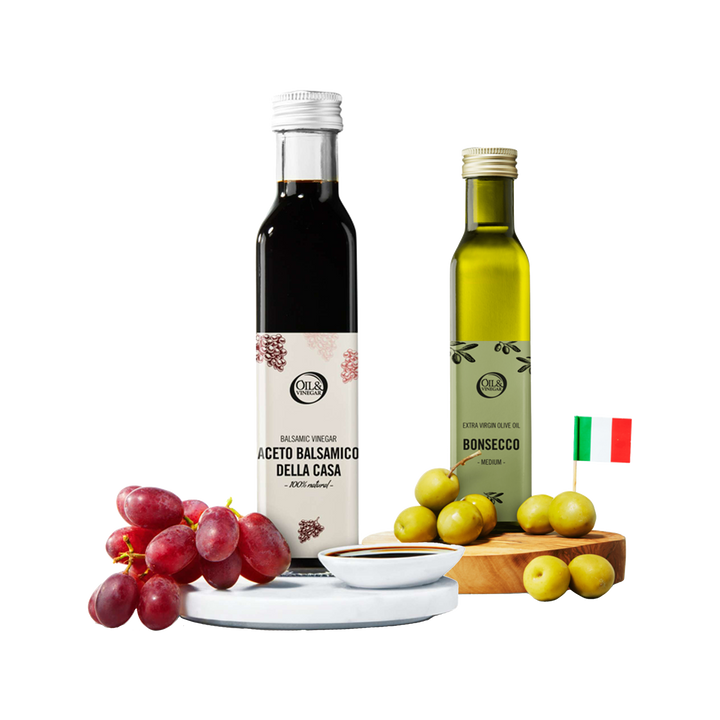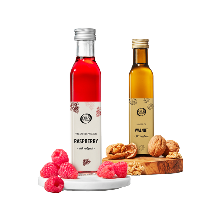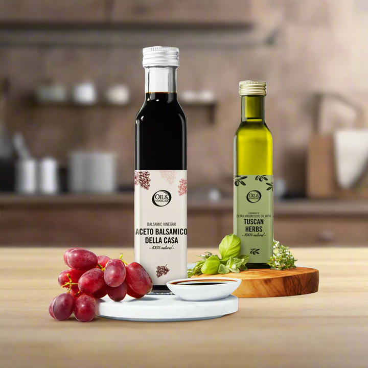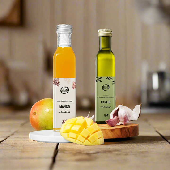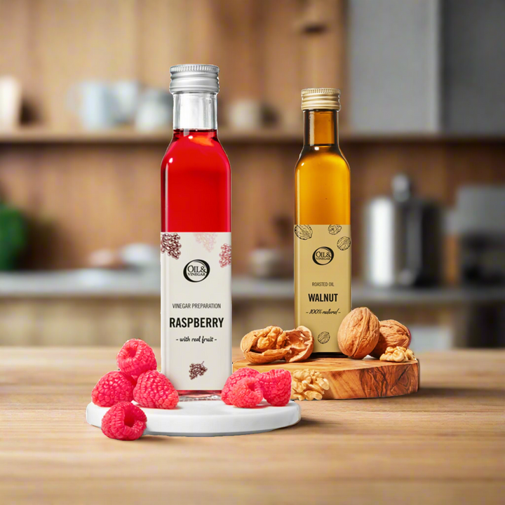 Le doux rencontre le fort : combinez des vinaigres fruités comme la fraise ou la figue avec une huile d'olive extra vierge puissante. Cette combinaison apporte de l'équilibre et élève votre vinaigrette ou marinade à un niveau supérieur.