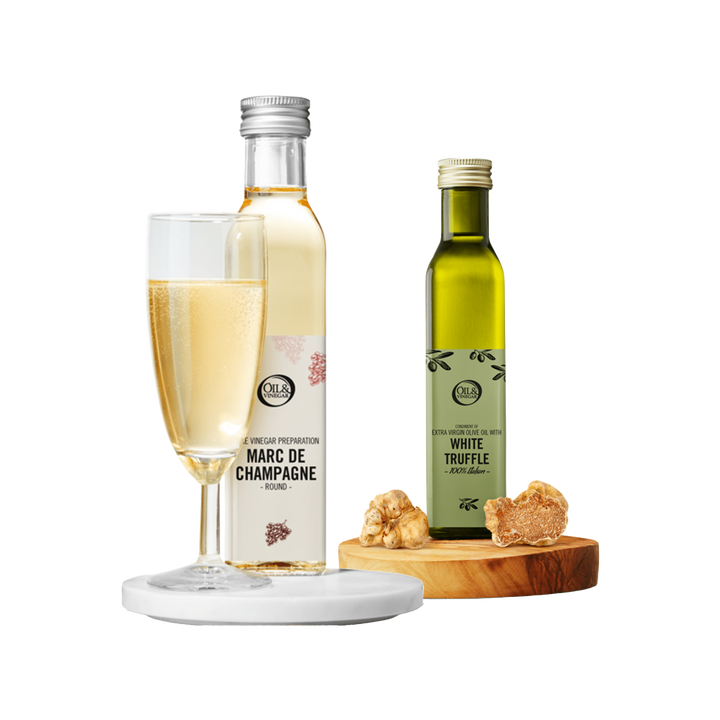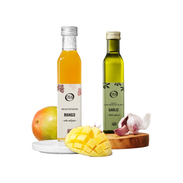 Avec notre menu combiné, vous pouvez facilement trouver l'accord parfait entre nos huiles d'olive et nos vinaigres. Que vous recherchiez un vinaigre de fruits frais et sucré à associer à une huile d'olive extra vierge épicée ou un vinaigre balsamique classique à associer à une huile d'olive douce, cette fiche vous aidera rapidement à faire le bon choix. Faites de chaque plat une sensation gustative !