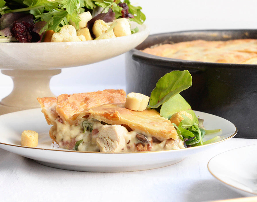 Voulez-vous être vraiment original ce prochain dîner de Noël ? Alors mettez ce Chick'n Pie aux champignons sur la table. Le poulet tendre, la croûte croustillante et la vinaigrette sucrée aux canneberges forment une délicieuse combinaison dont vos invités raffoleront l'année prochaine.