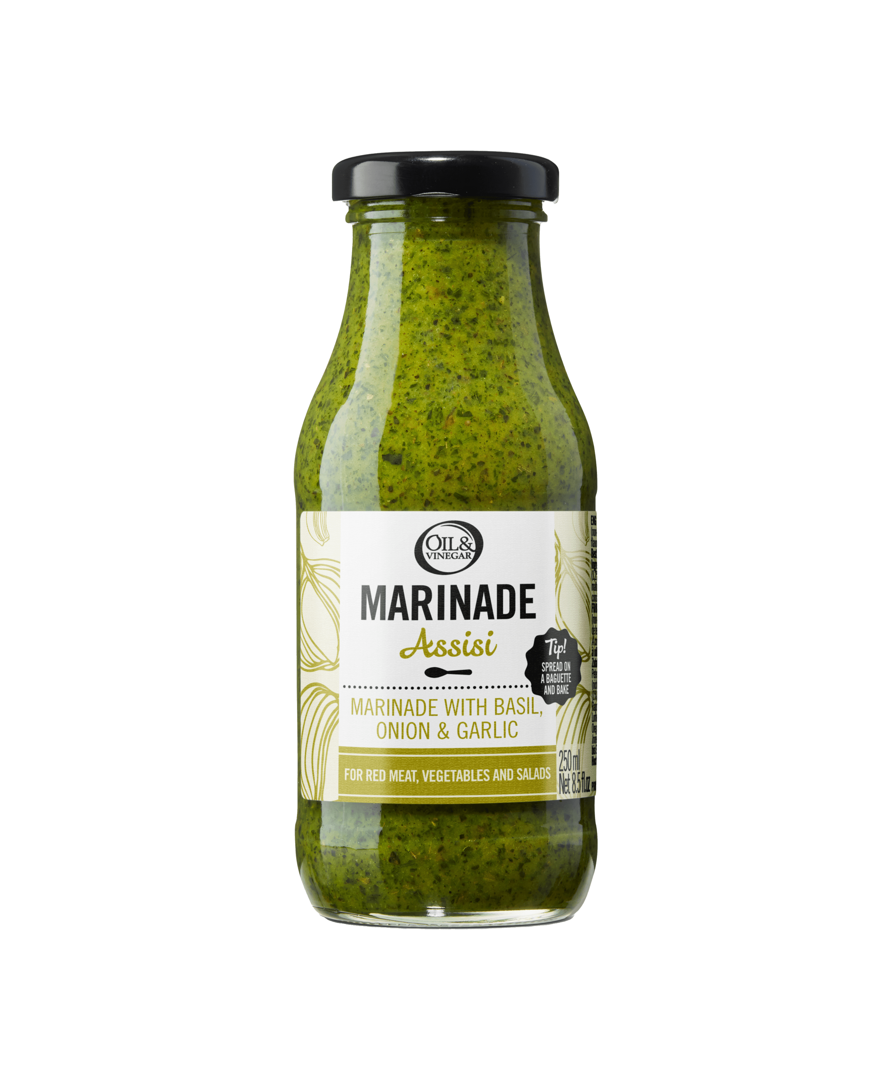 La Saveurade Assisi nest quune des trois délicieuses marinades culinaires disponibles en exclusivité chez Oil & Vinegar. Dégustez également la Saveurade Sevilla au paprika, tomate et oignon, ou la Fréjus à lail, persil et oignon. Toutes aussi irrésistibles, à savourer sans limites !