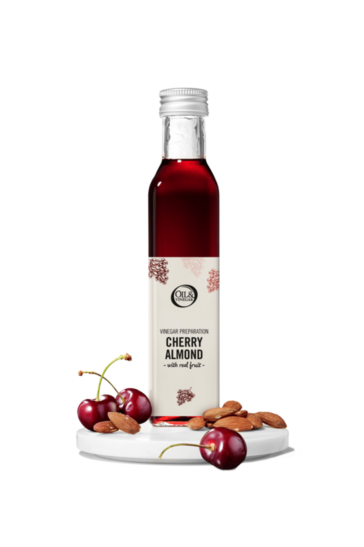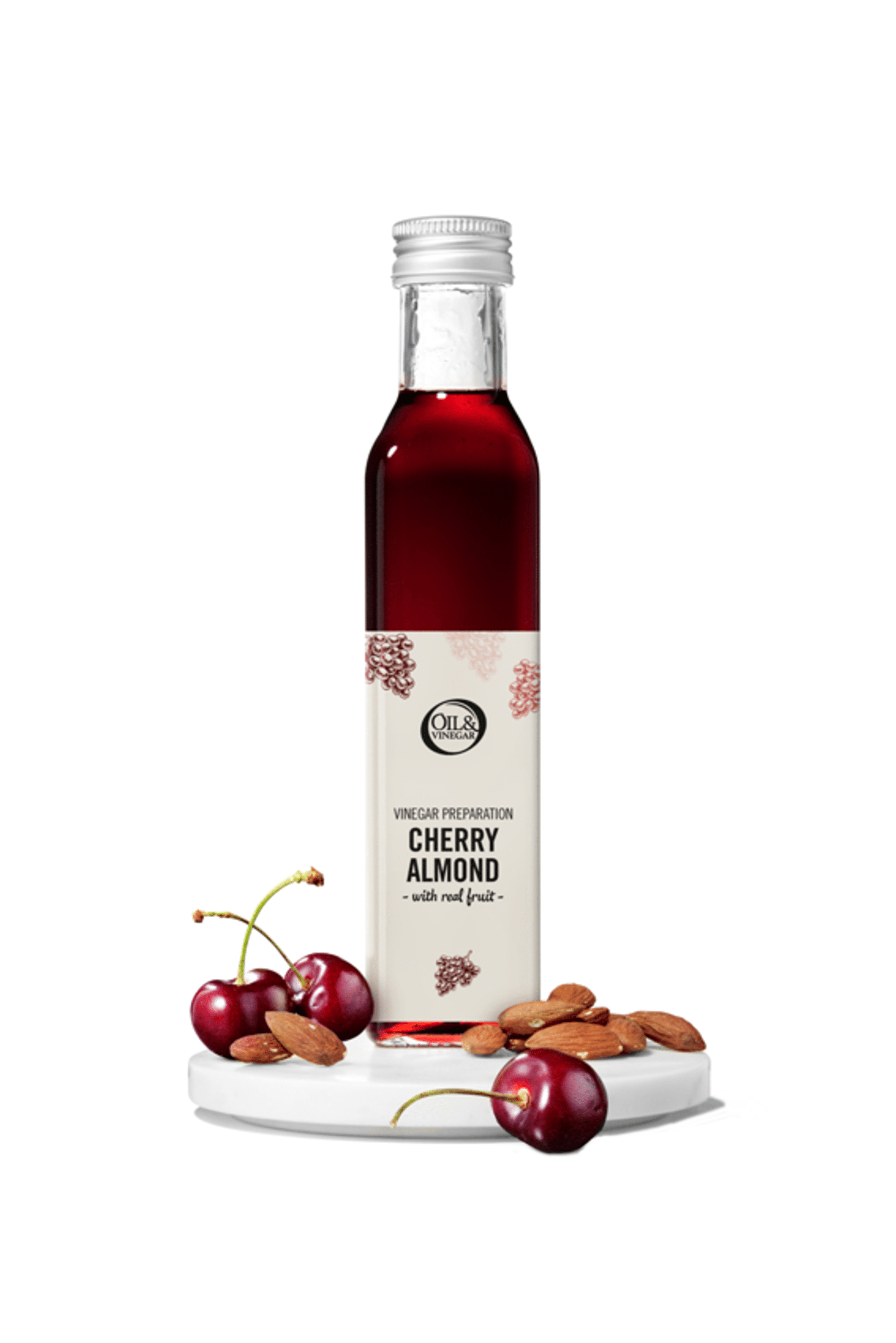 La combinaison de cerise et damande est succulente et sexprime mieux que jamais dans le vinaigre onctueux aux cerises et amandes dOil & Vinegar. Ce vinaigre possède une structure un peu plus sirupeuse. Lextrait naturel de cerise, provenant de jus de cerise concentré, en combinaison avec lhuile damande concentrée, crée une sensation gustative de noix, douce et fruitée, inoubliable avec la viande ou le fromage ! Que diriez-vous dune combinaison avec le gibier, la volaille, le fromage à la crème ou double-crème ?