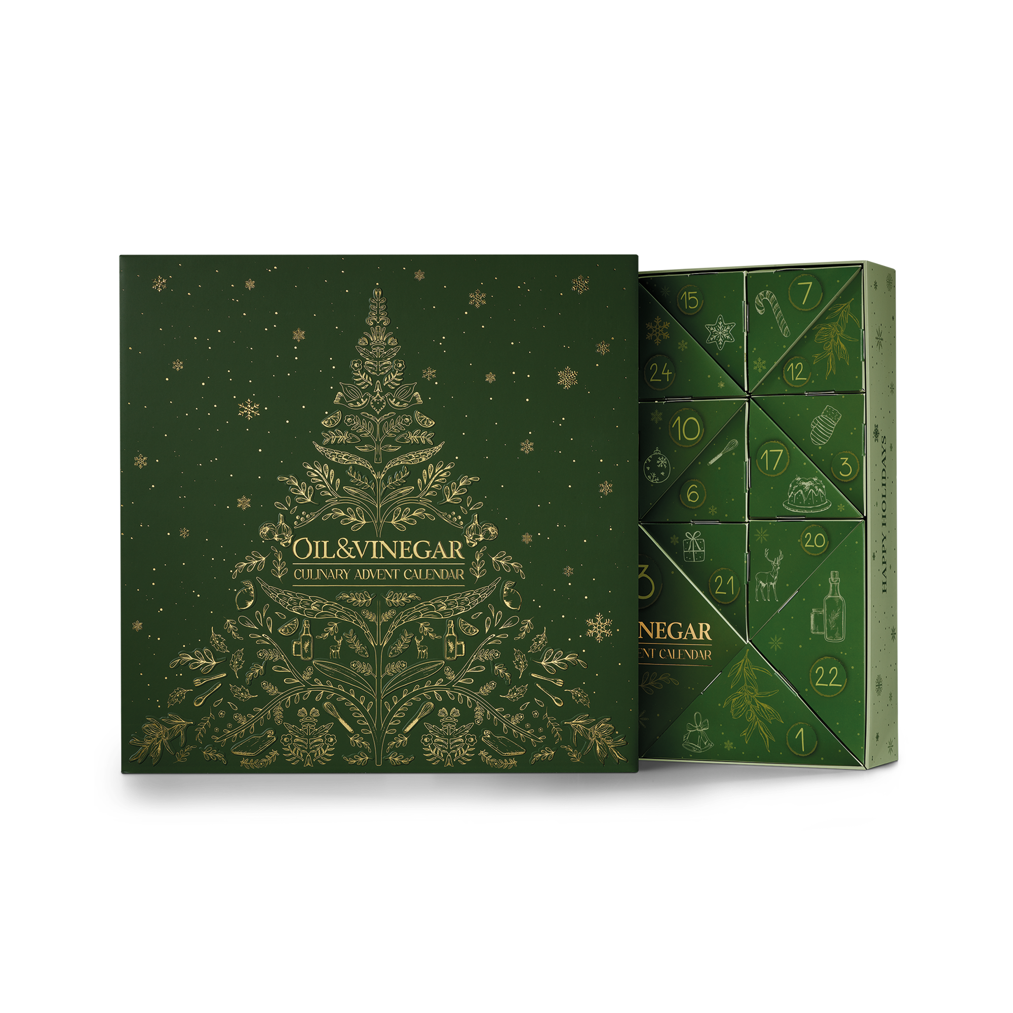De Oil & Vinegar Adventskalender 2025 bevat 24 + 1 smaakvolle verrassingen: van extra vierge olijfolie en exclusieve balsamicoazijn tot kruidenmixen, tapenades en andere delicatessen. Elke dag ontdek je een nieuwe culinaire inspiratie voor de feestdagen.