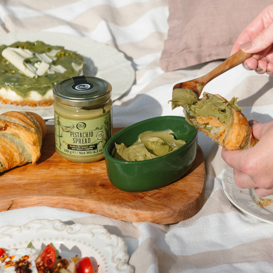 Met Pistache Passion vier je Pasen op z’n Italiaans. Dit verfijnde cadeau draait helemaal om de zachte, nootachtige smaak van pistache. Smeer de romige pistachespread op vers brood of brioche, breek een stukje knapperige pistache-nougat af bij de koffie en ontdek hoe verrassend de geroosterde pistacheolie is over desserts, yoghurt of zelfs een lente-salade.