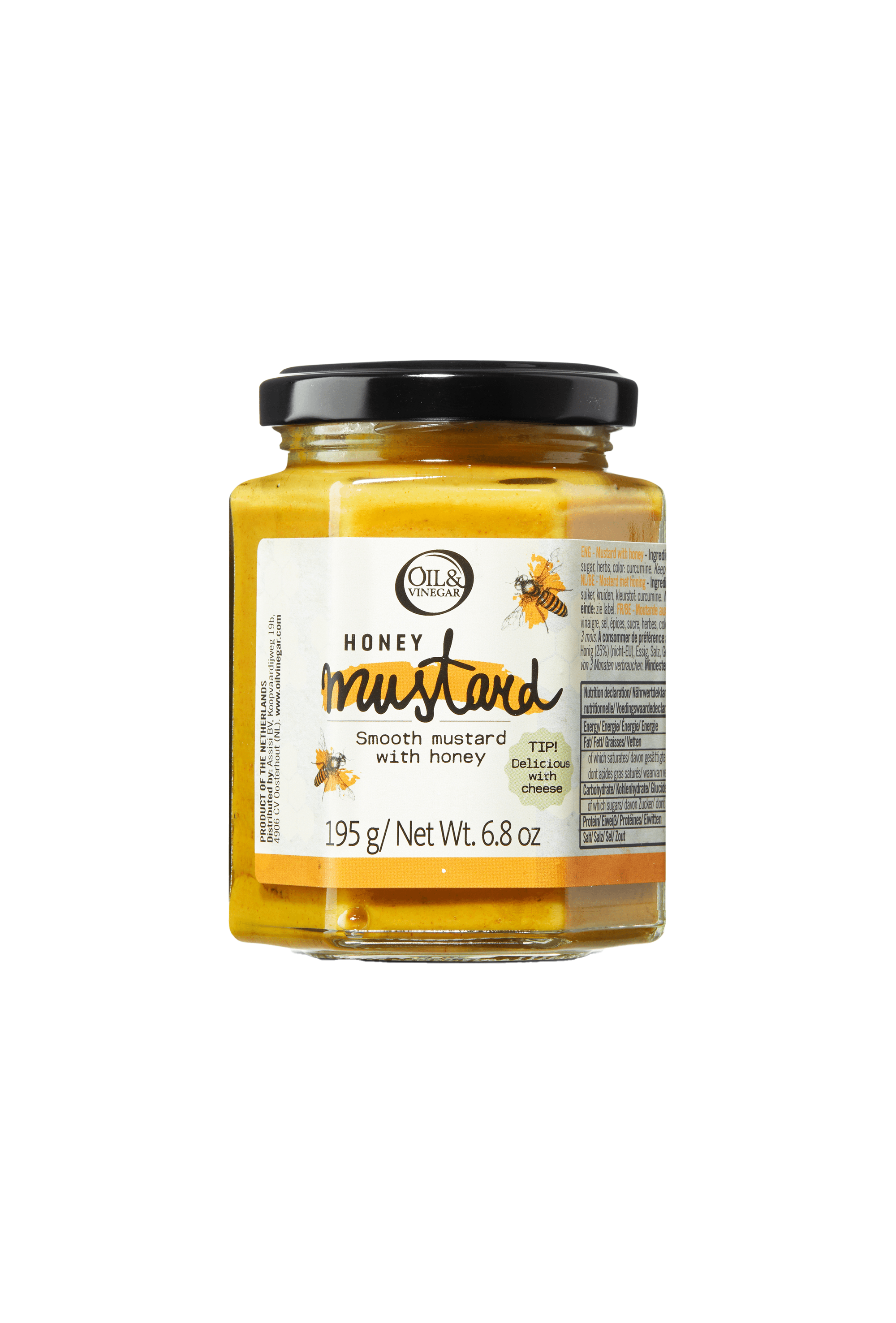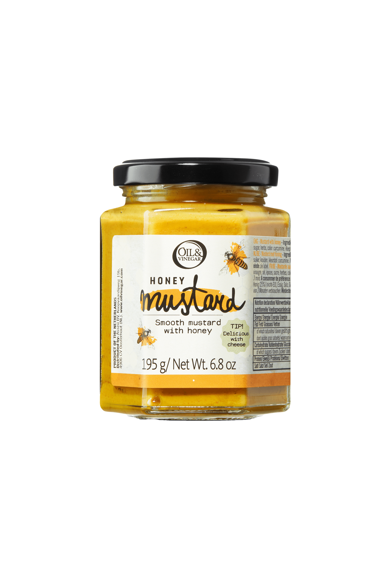 Mooie, gladde mosterd met 25% honing. Geweldig bij kaas en ham, maar ook een voortreffelijke vleesmarinade.