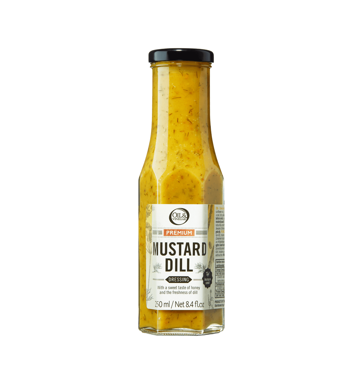 Ongelofelijk lekkere mosterd-dille dressing met 34% mosterd. Pittigzoet met een vleugje dille!