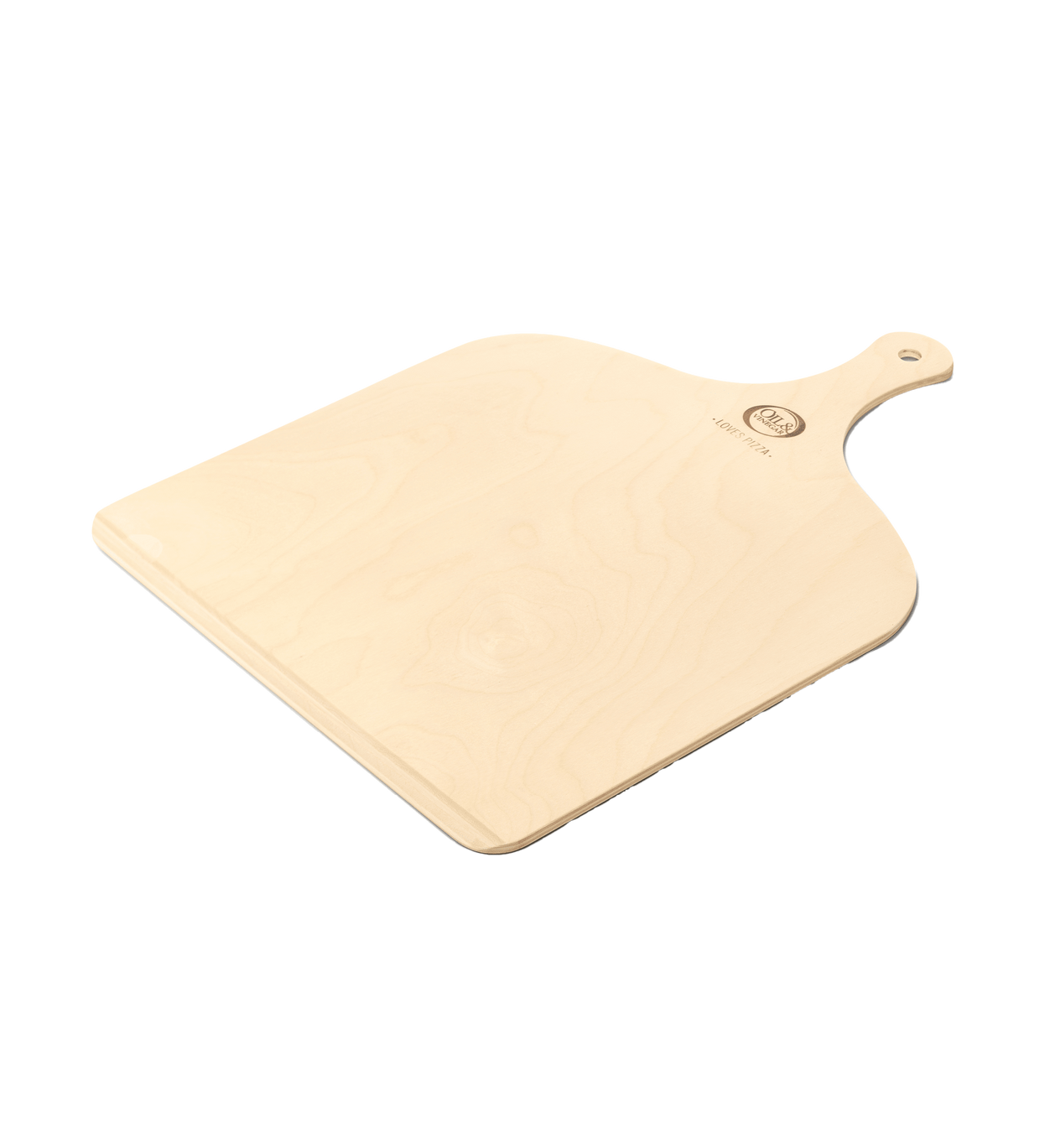 maak je pizzabodem op deze schep op en schuif hem er dan mee in de oven! (De schep kan zelf niet mee).
